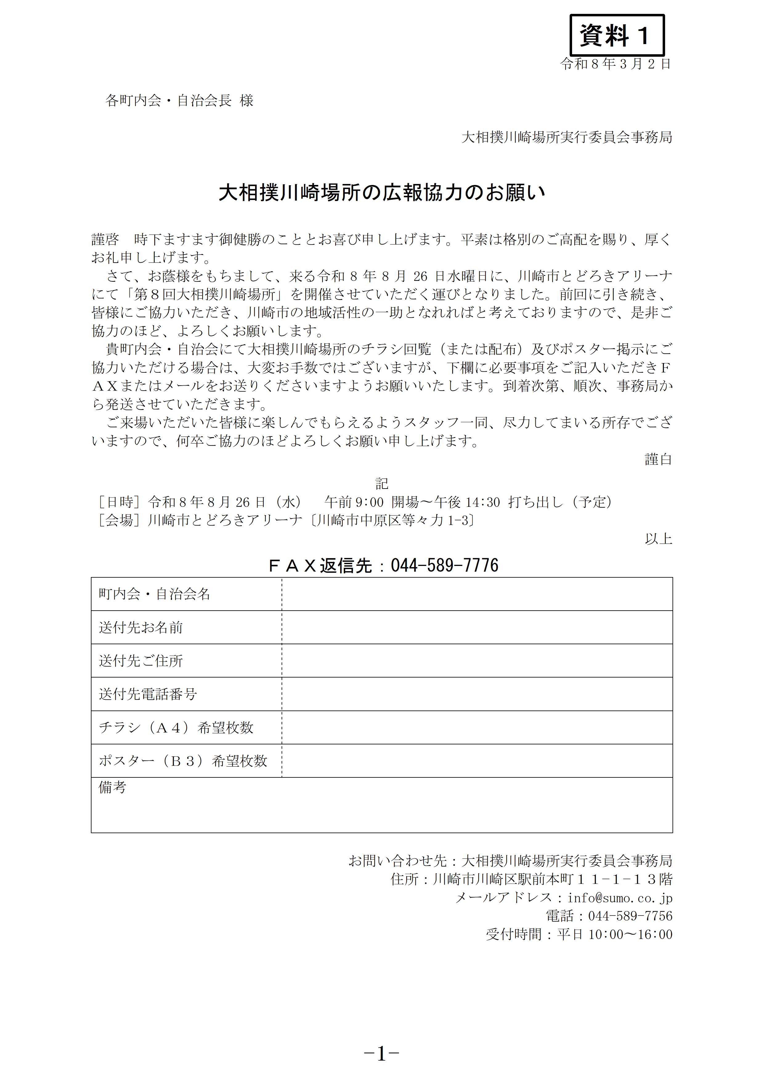 (1)大相撲川崎場所の広報協力のお願いについて