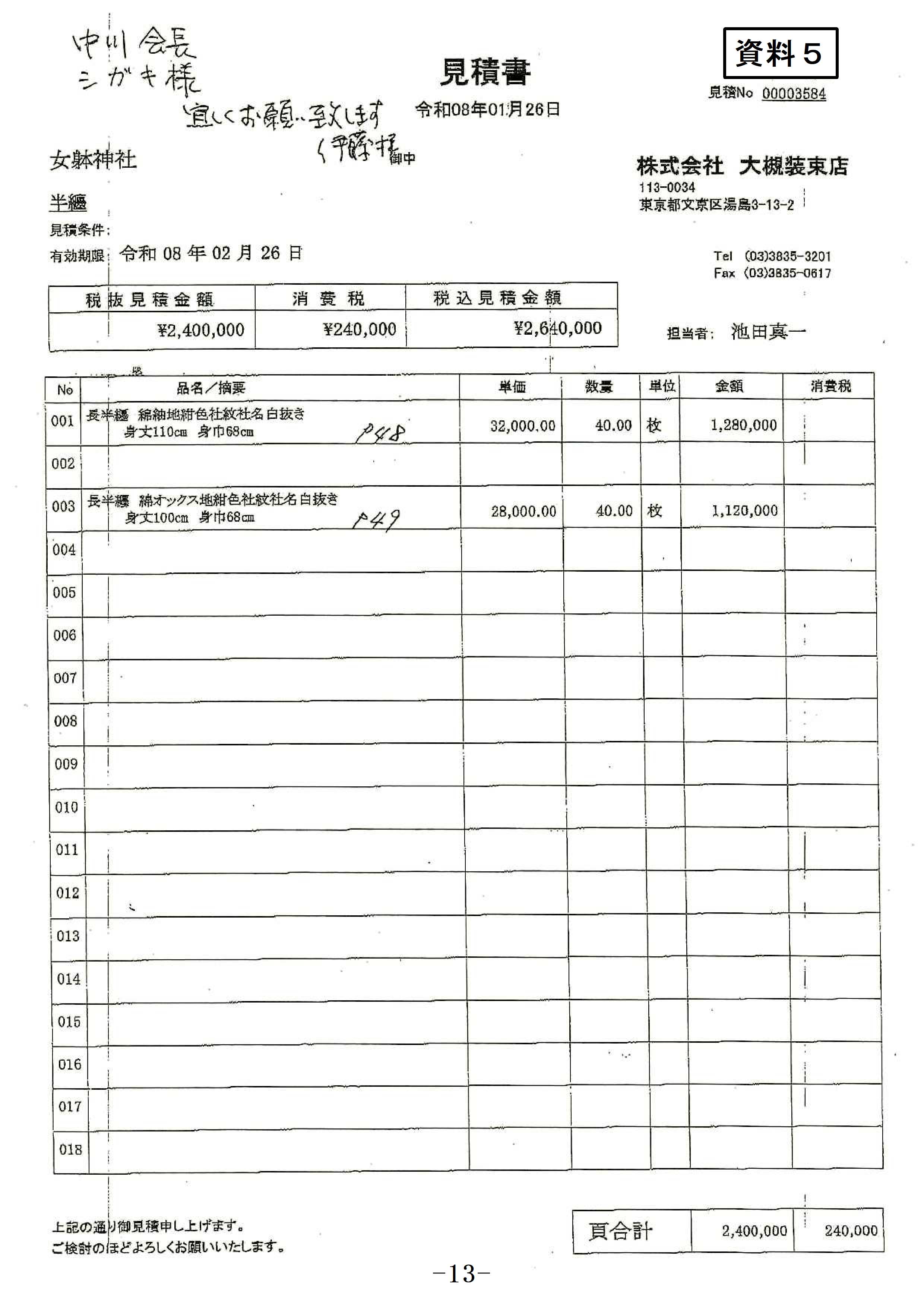 (12)女体神社 半纏の購入について