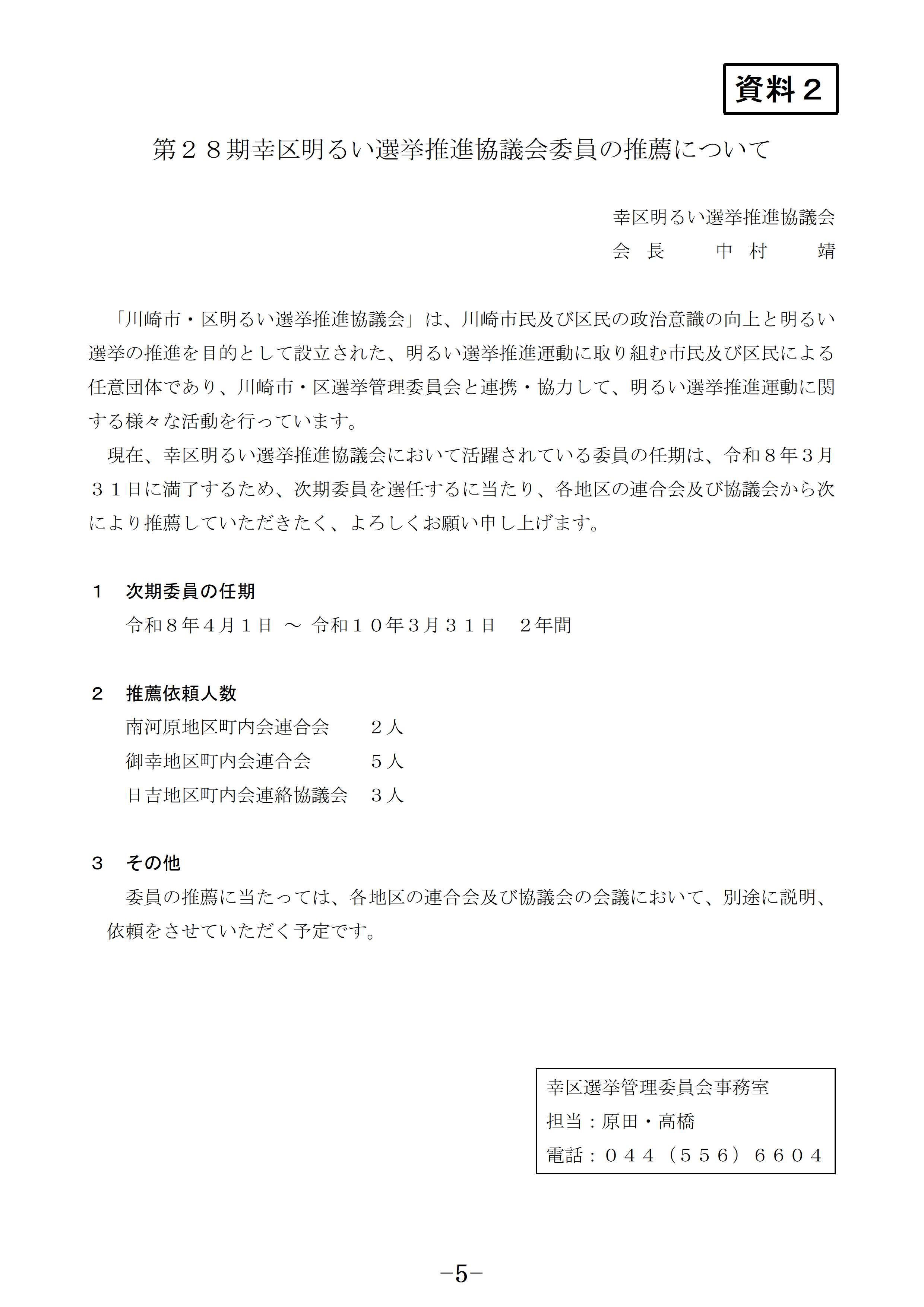 (6)幸区明るい選挙推進協議会の委員任期満了に伴う